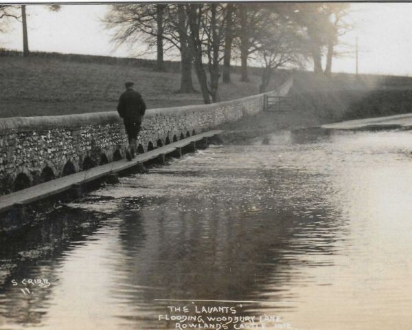 - Rowlands Castle: In the village the stream crosses Woodberry Lane at the ford, flowing south running alongside the South Western Railway line, crossing under the train line just above the intersection of Whichers Gate Road. During periods of heavy rainfall, the high groundwater and surface run-off cause the Lavant to rise high enough at the ford to cause flooding in the village and Woodberry Lane to be closed, often for several months.